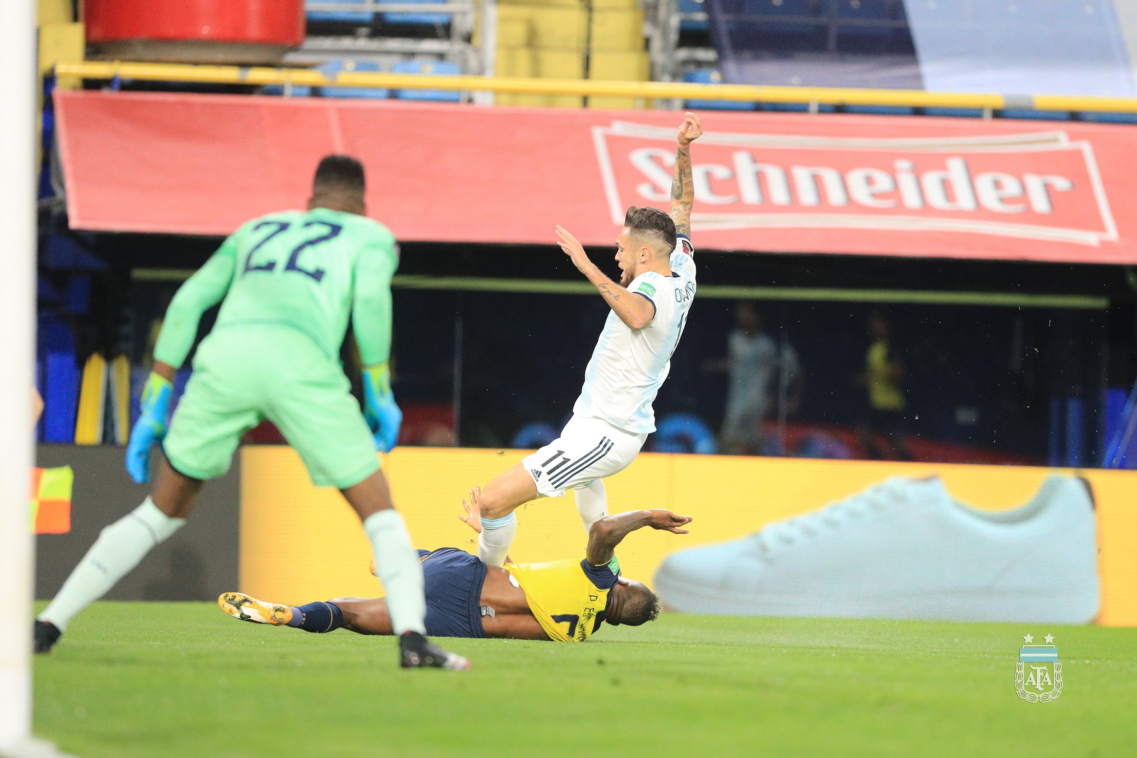 Con Lautaro Martínez desaparecido y muy bien tomado por los defensores rivales, Lucas Ocampos mostró pergaminos para seguir en el equipo titular, ya que fue la carta de peligro más importante junto a Messi en el ataque argentino.