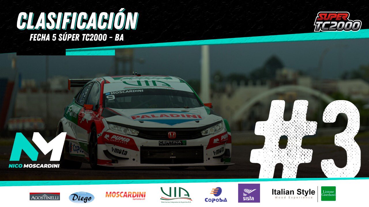Bajo un diluvio en el autódromo Oscar y Juan Gálvez de la ciudad de Buenos Aires, escenario de la quinta fecha de Súper TC2000, el piloto de La Plata, Nicolás Mosrcadini, quedó en la tercera colocación a 0.435/1000.