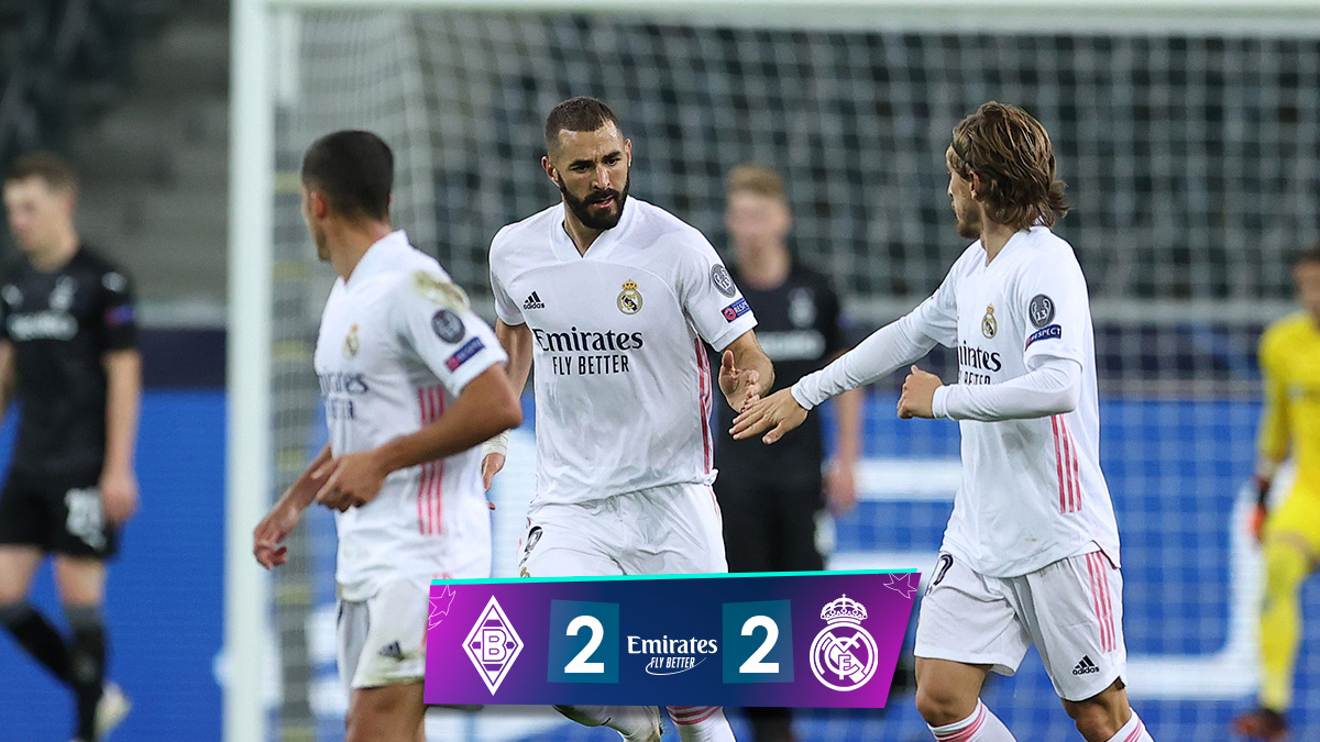 Salvó las papas y un poco más: con el último suspiro, el Real Madrid igualó 2 a 2, con goles de Karim Benzema y Casemiro, ante el Borussia Mönchengladbach, luego de ir perdiendo 0 - 2 durante casi todo el encuentro que se jugó en Alemania.