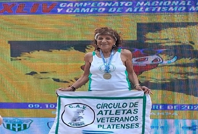 La deportista representa a La Plata en la categoría Master de veteranos, y próxima a cumplir 77 años se convirtió en un ejemplo a seguir para muchos jóvenes que hacen deporte en la región.
