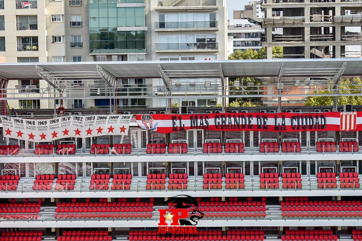 Algunos hinchas del Pincha se acercaron antes del mediodía a Uno para colocar las banderas y aportar todo el color que rodeó las tribunas del estadio albirrojo. Además, sobre el inicio del encuentro se pudo presenciar durante unos minutos el estruendo que generó la pirotecnia en los alrededores.