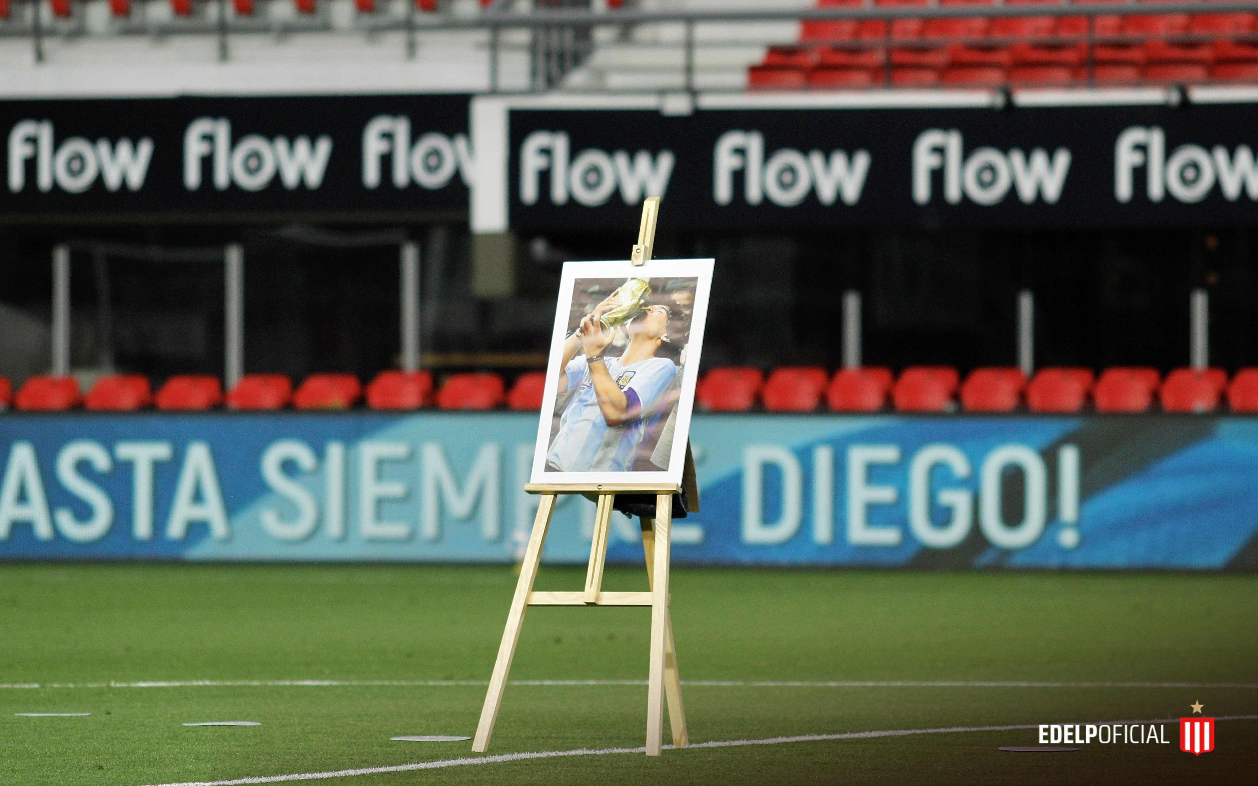 Durante gran parte de la noche, en el estadio de 1 y 57, como así también en las afueras delmismo, hinchas y dirigentes, como así también la Liga Profesional, le rindió homenaje a DiegoMaradona.