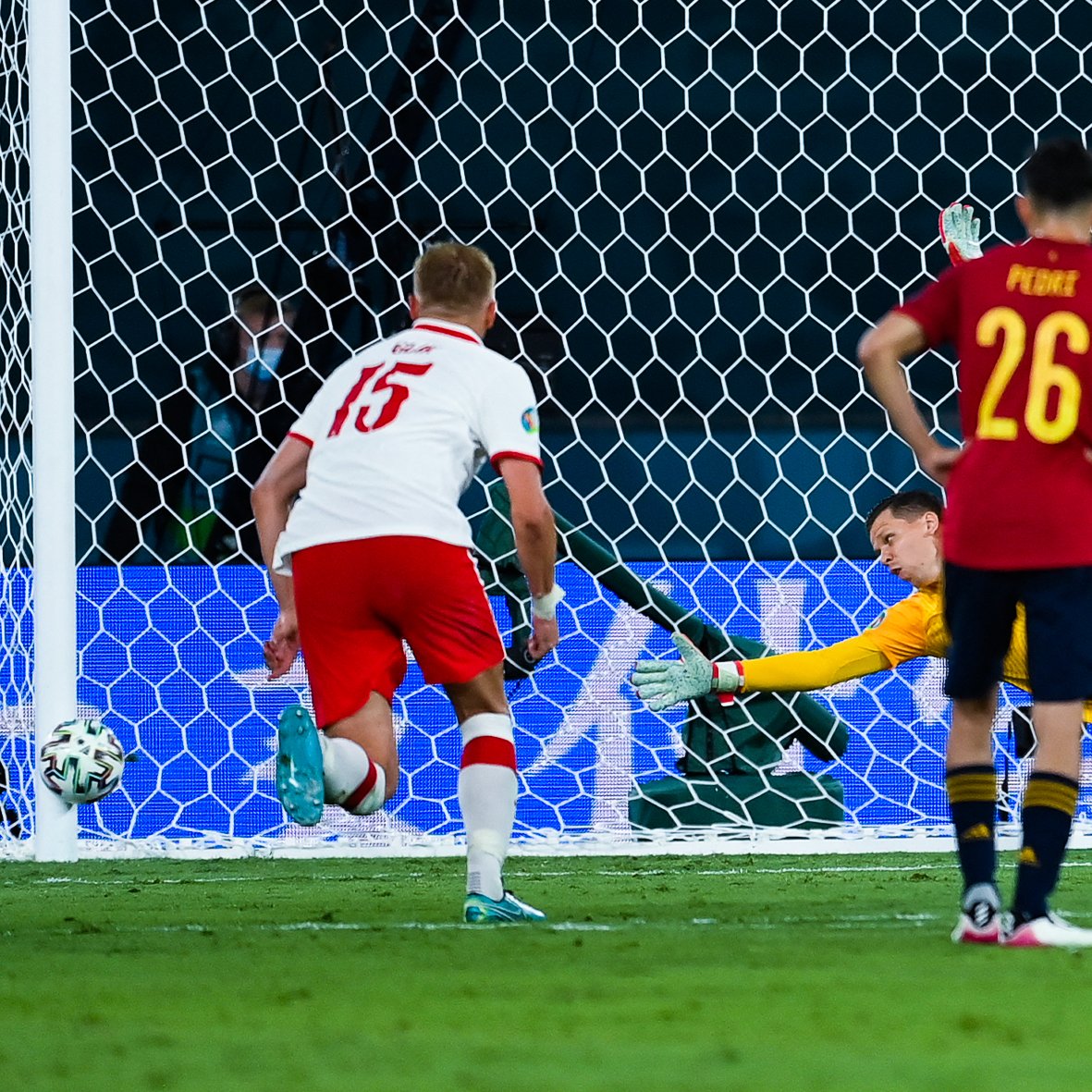 Luego del gol, España tuvo una enorme oportunidad de recuperar la ventaja. Orsato cobró penal por una mano dentro del área, pero Gerard Moreno estrelló la ejecución contra el palo y Morata falló el rebote de manera increíble. Sobre el final, también estuvo cerca Polonia, pero fue final 1-1