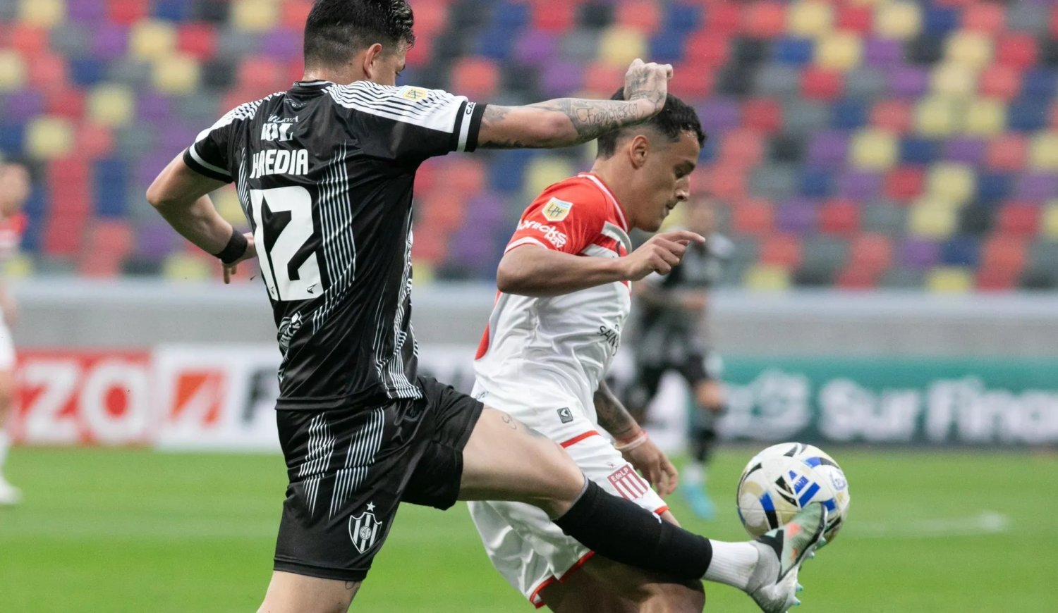 El arranque del partido fue letal para el Pincha. En apenas diez minutos, los dirigidos por Omar De Felippe aprovecharon todas las ventajas que ofreció el conjunto platense y se pusieron 2-0 arriba con goles de Muslera —en contra— y Perelló. A partir de allí, los santiagueños manejaron el ritmo del encuentro con inteligencia, ante un rival que pareció no reaccionar a tiempo.