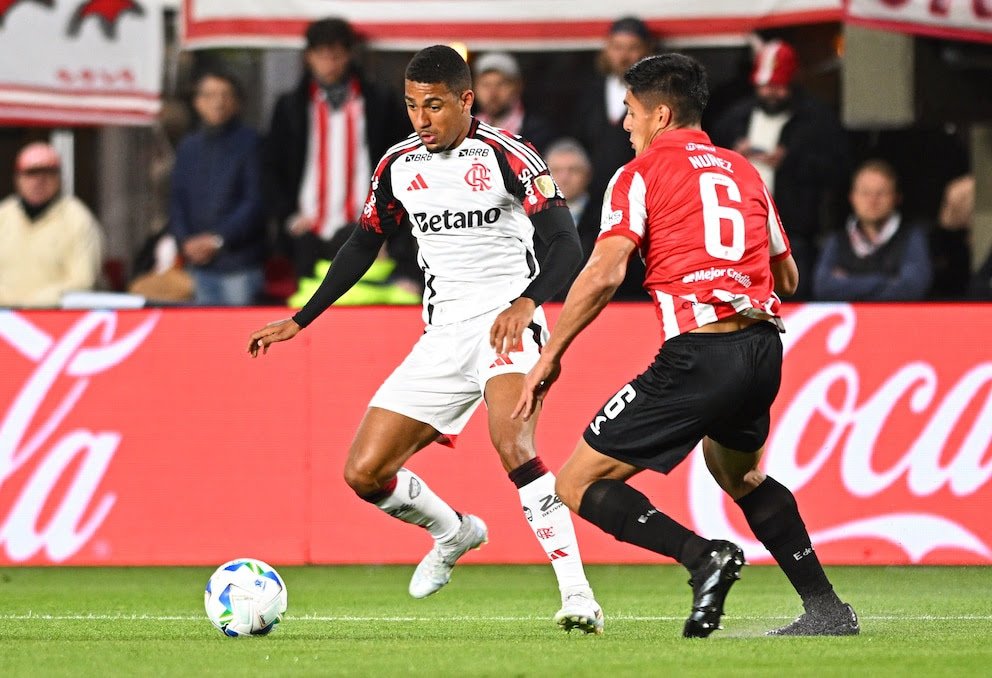 Durante el encuentro, el equipo carioca mostró su estilo práctico, apostando a salidas con toques cortos y tiros de media distancia. Gonzalo Plata tuvo la primera clara, aunque Facundo Rodríguez la sacó sobre la línea, mientras que Saúl Ñíguez estuvo cerca en un par de ocasiones, una que pegó en el palo y otra que pasó cerca del arco. Jorginho también exigió a Fernando Muslera con un remate desviado al tiro de esquina.