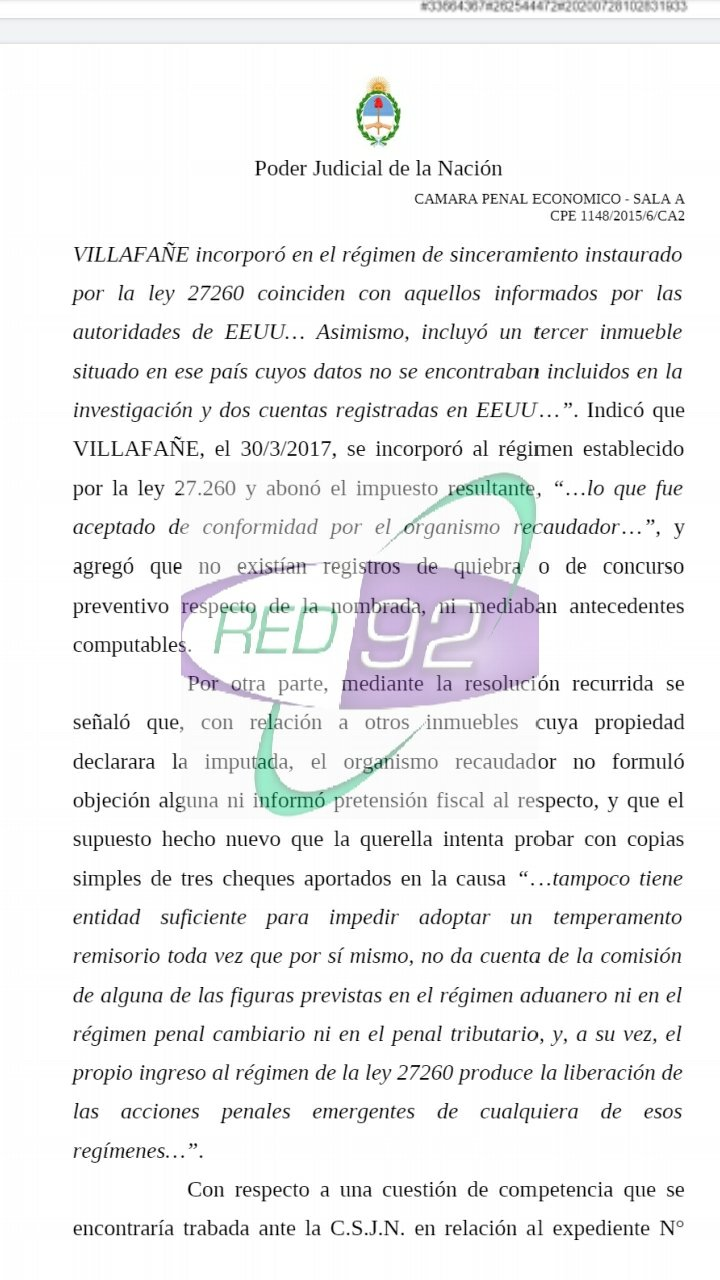 Que la señora Villafañe omitió declarar bienes y cuentas en el exterior cuando se acogió a la ley de blanqueo por lo que eso hace que se caiga esa acción más alla de haber efectuado el pago de los impuestos por los montos blanqueados”