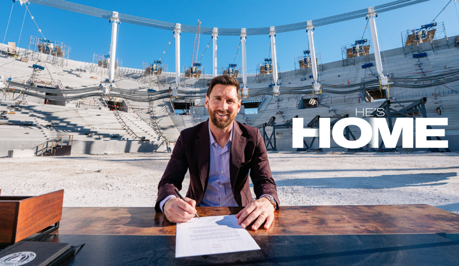 “Está en casa”, fue el elocuente mensaje con el que Inter Miami anunció la continuidad de Messi en el club. En un video publicado en las redes sociales de la institución, la Pulga aparece de traje, observa su nuevo contrato, le pone la firma y sonríe antes de que la cámara muestre que se encuentra en medio de la construcción de la cancha nueva de Las Garzas. Sí, un anuncio a todo trapo.
