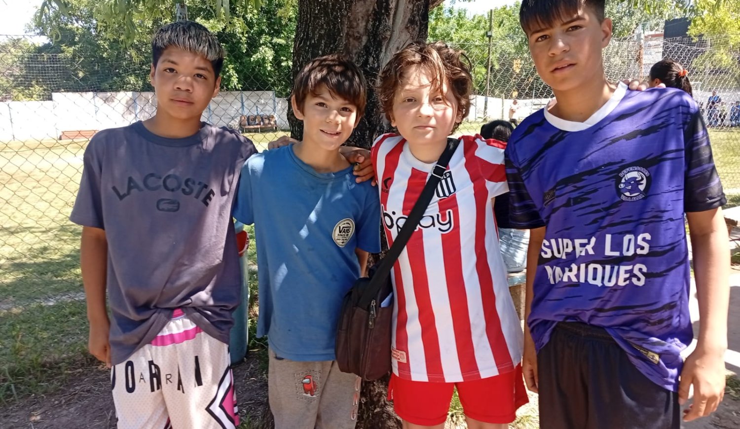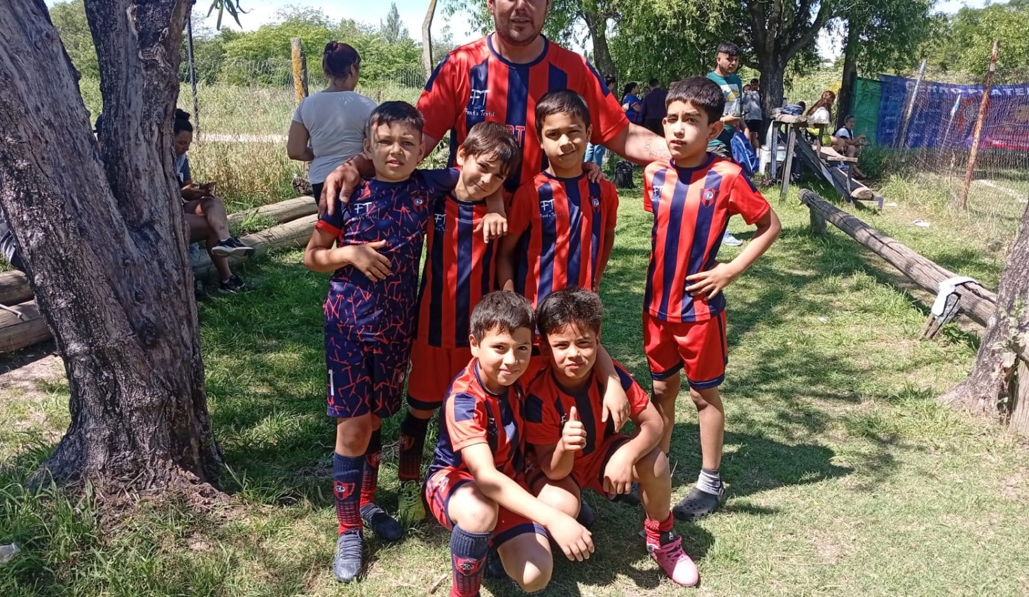En el marco de uno de los últimos partidos de local en la canchita de 461 y 18, los padres decidieron que los nenes salgan a jugar con los cachetes pintados con la bandera argentina y en algunos casos, con el pelo teñido también de celeste y blanco.