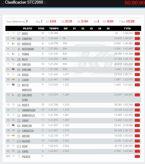 A bordo del Corolla número 17 del Toyota Gazoo Racing, Rossi se adueñó primero de la clasificación con un tiempo de 1:20.388. En la segunda posición, a 0.036s de distancia, terminó el Chevrolet de Agustín Canapino, mientras que tercero clasificó Facundo Ardusso, con su Renault, a 0.390s.
