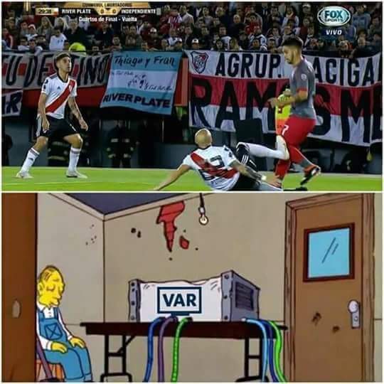 "Una VAR-güenza" o "nos roVARon": Estallan los memes por el escandaloso arbitraje en River - Independiente