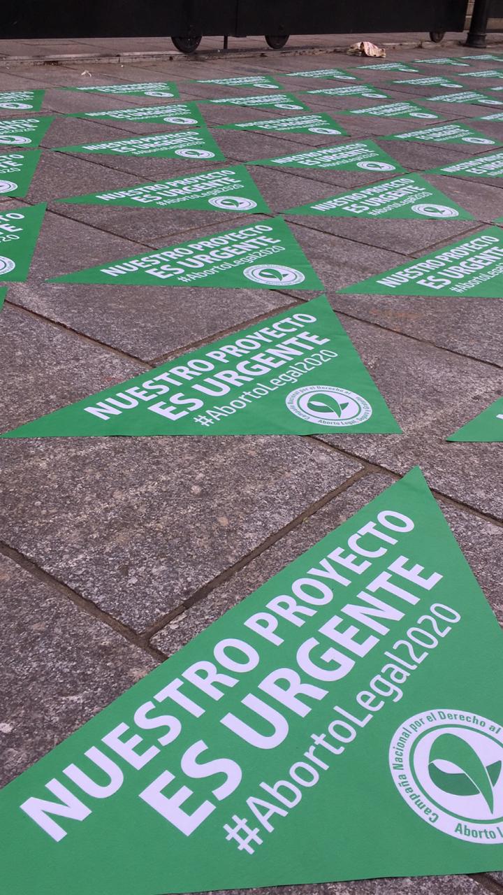Integrantes de la Campaña Nacional por el Derecho al Aborto Legal, Seguro y Gratuito se reunieron frente al Congreso para desplegar sus pañuelos verdes.