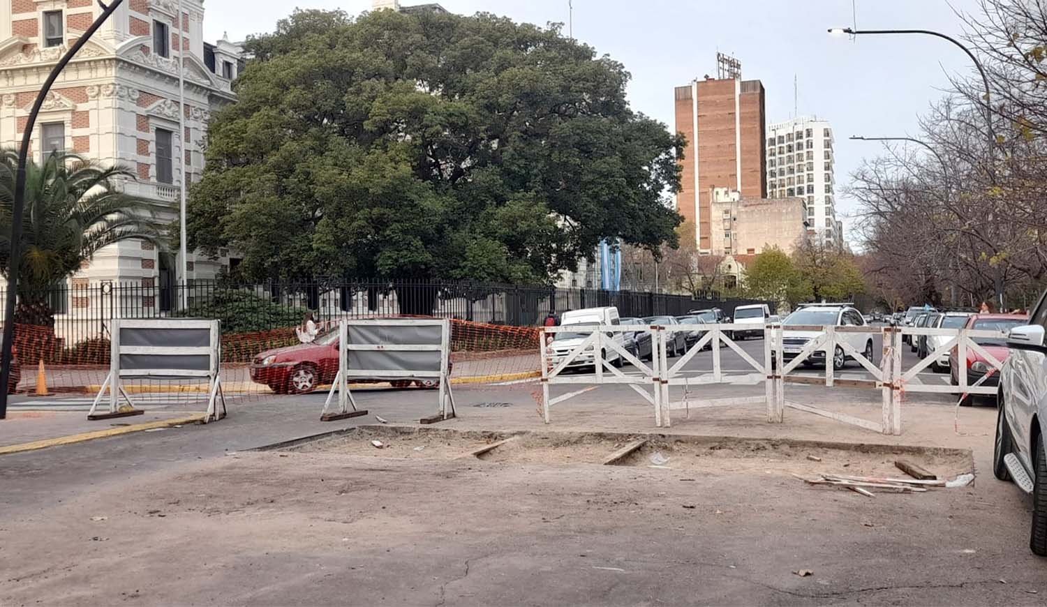 Aprovechando la escasa circulación de vehículos por el feriado, una cuadrilla de trabajadores cortó el tránsito durante todo el día en la esquina de 6 y 51, justo en diagonal al ingreso de Casa de Gobierno y frente a la Plaza San Martín, para terminar una obra que había quedado pendiente desde el verano.
