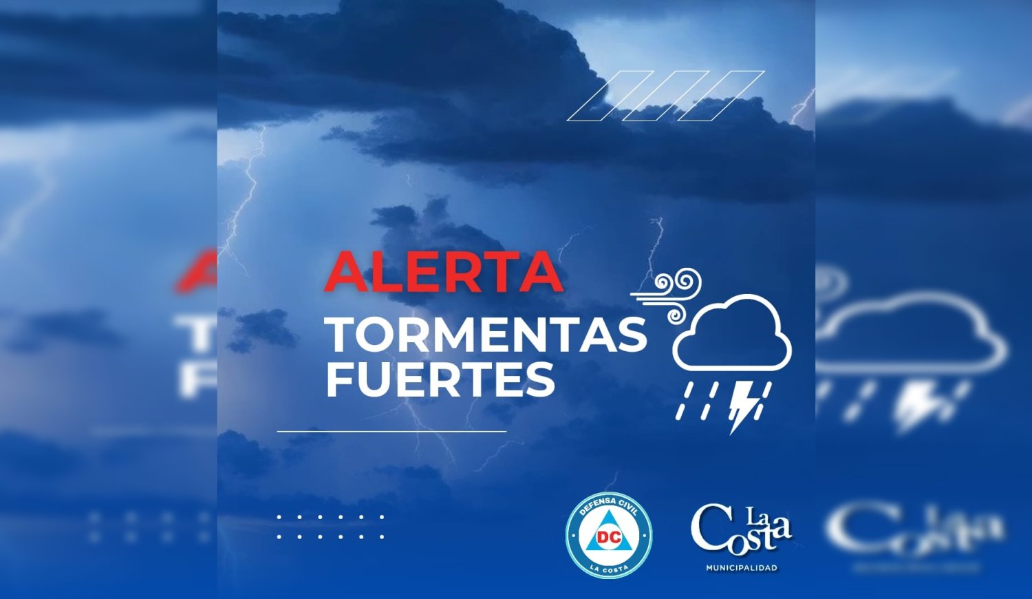 Defensa Civil La Costa emite alerta amarilla por tormentas fuertes