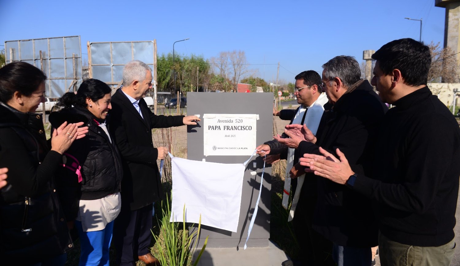 Descubrieron la placa que denomina “Papa Francisco” a la avenida 520