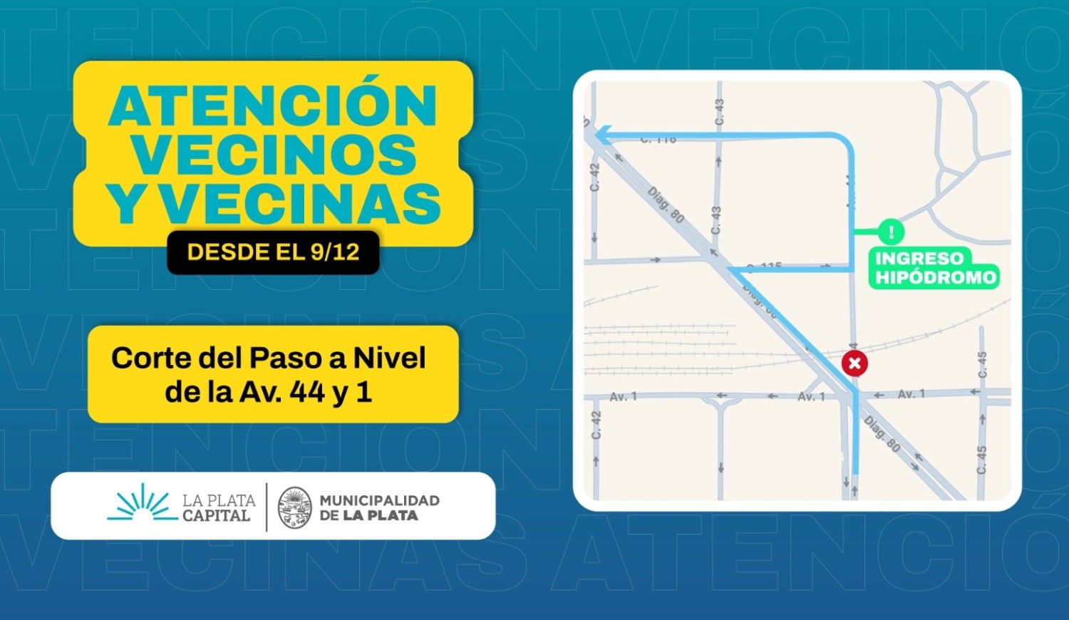 El municipio anticipó que desde el martes 9 de diciembre permanecerá cerrado al tránsito el paso a nivel de 44 y 1 con motivo de la ejecución de reparaciones en las vías.