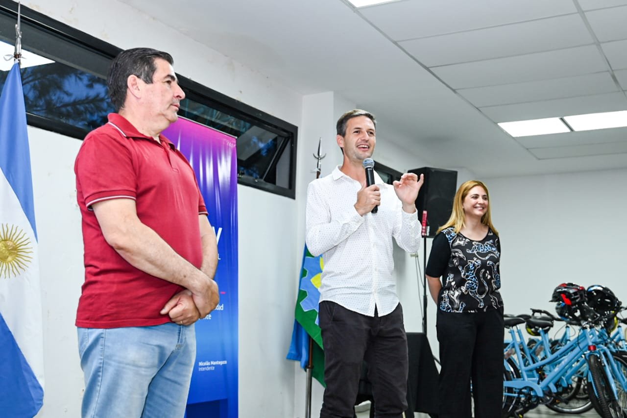 El intendente Nicolás Mantegazza entregó bicicletas a los proyectos ganadores del Concurso de Seguridad Vial en la Universidad de San Vicente.