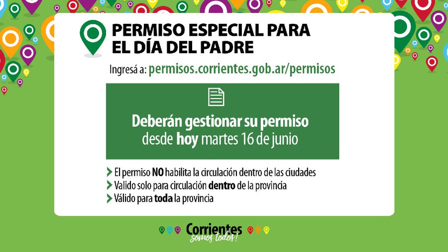 En Corrientes, por ejemplo, el gobernador Gustavo Valdés, dispuso permisos excepcionales de circulación para viajes dentro de la provincia por el Día del Padre.