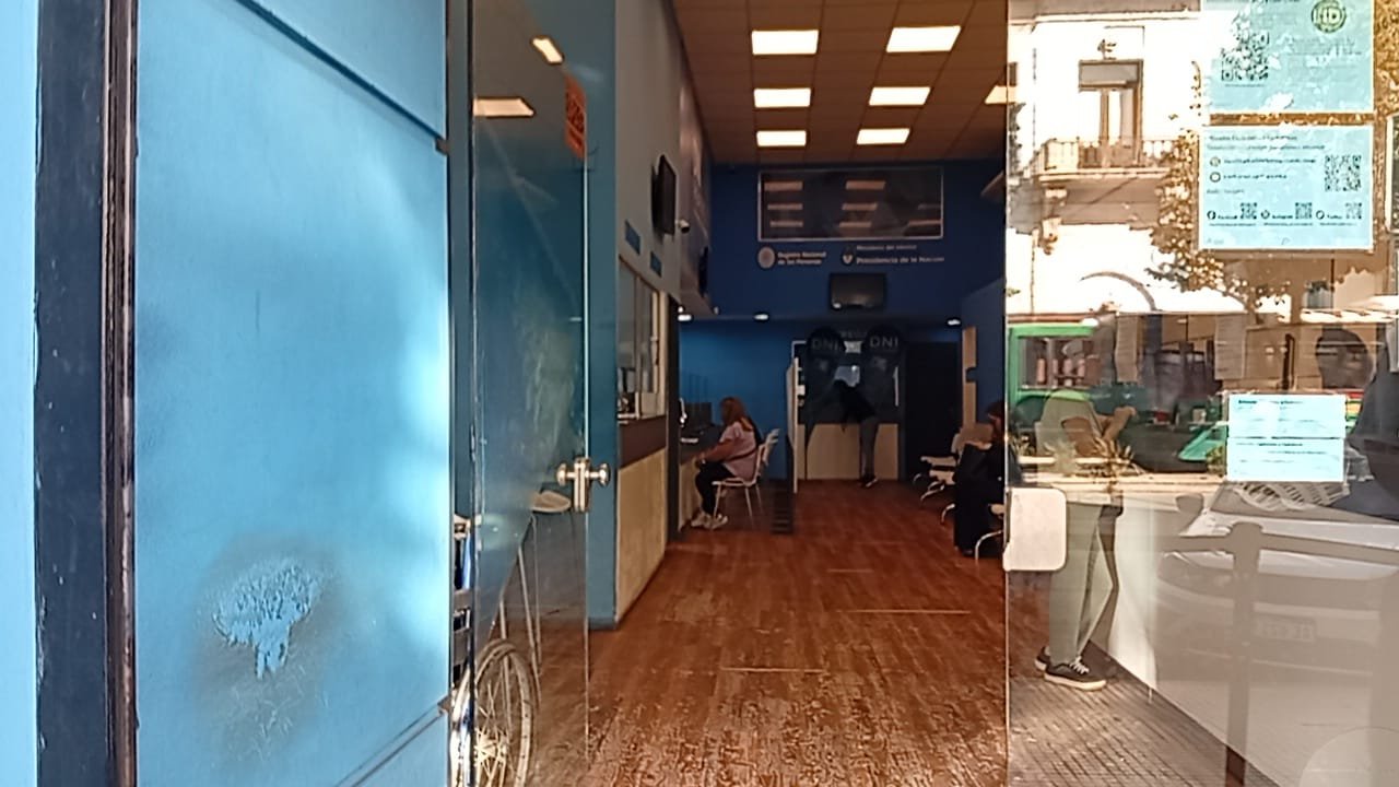 Ayer a la mañana, en el contexto de una jornada fresca y ventosa, a las personas se las hacía formar fila sobre la vereda, mientras el ingreso al Registro en el cual se hacen documentos y pasaportes permaneció encintado y delimitado al acceso al público.