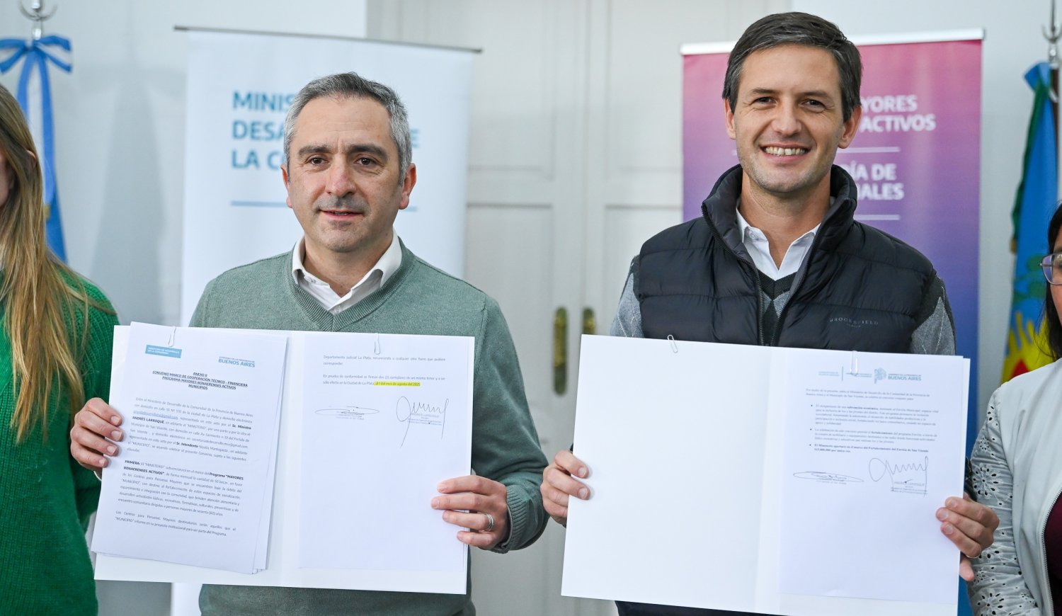 Durante la misma jornada, se firmaron convenios para potenciar los programas Envión y Mayores Bonaerenses Activos. El acuerdo con el programa Envión implicó una inversión provincial de quince millones de pesos destinada a equipar las sedes locales, brindando apoyo a jóvenes de 12 a 21 años en situación de vulnerabilidad, acompañando su desarrollo educativo, alimentario y social.