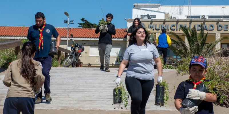 La jornada contó con la colaboración del grupo Scout y de jóvenes del programa Envión, quienes participaron en las labores de plantación y en acciones de concientización sobre la importancia de preservar los médanos como defensa natural del frente costero.