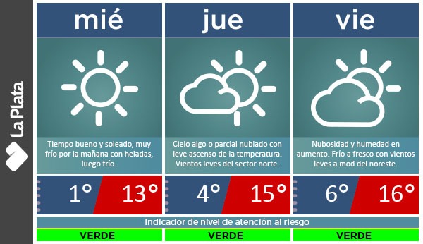Sera una jornada de ola polar en la ciudad de La Plata, pero con un cielo totalmente soleado. Así lo anunció el Servicio Meteorológico, que pronosticó para este miércoles una mínima de 1 grados y una máxima de 13.