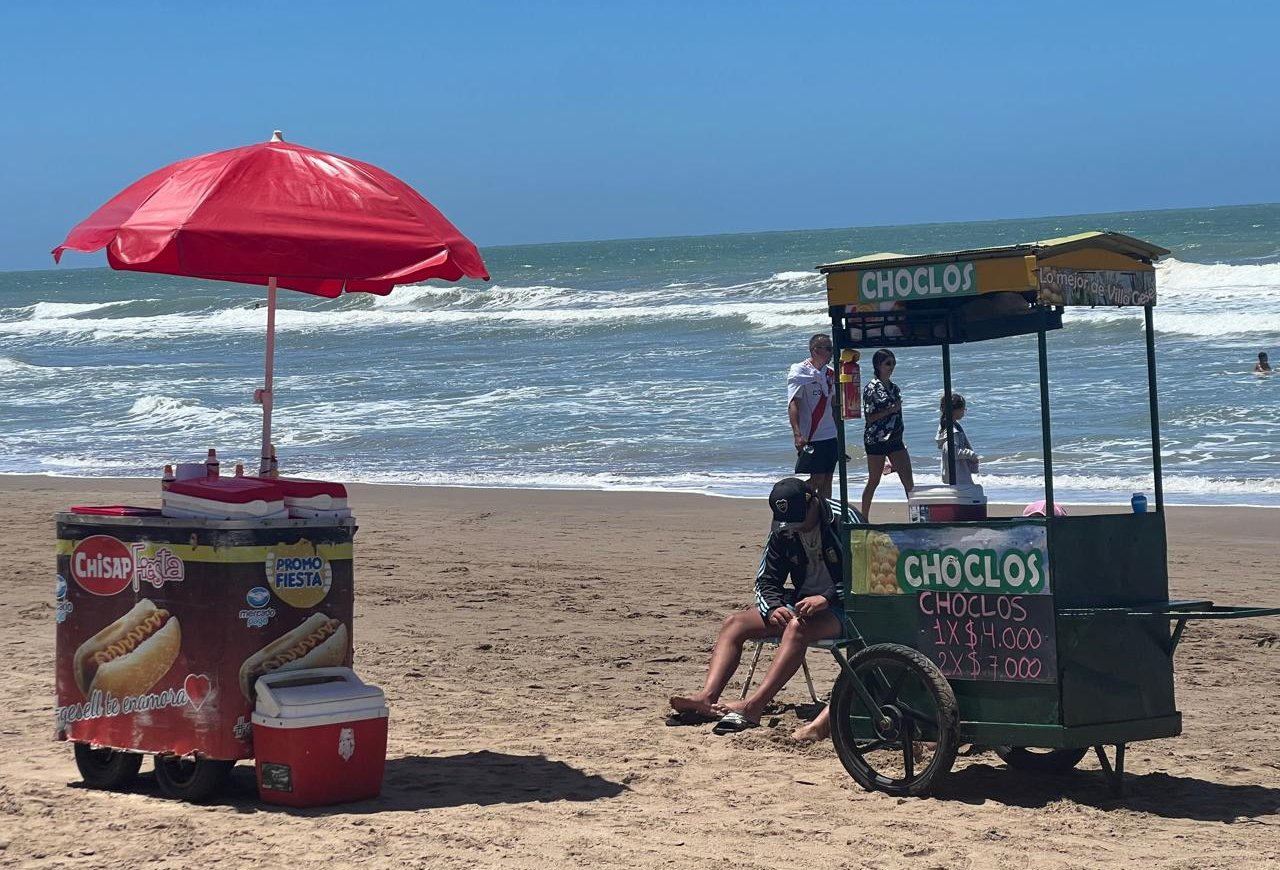 También en la playa se ofrecen sombrillas para cubrirse del sol a 80 mil pesos, pero regateando el precio las “pueden largar” a 55 mil, lo cual sigue siendo un precio muy alto, ya que en un local de venta de artículos de playa se ofrece a 42 mil pesos el mismo producto.