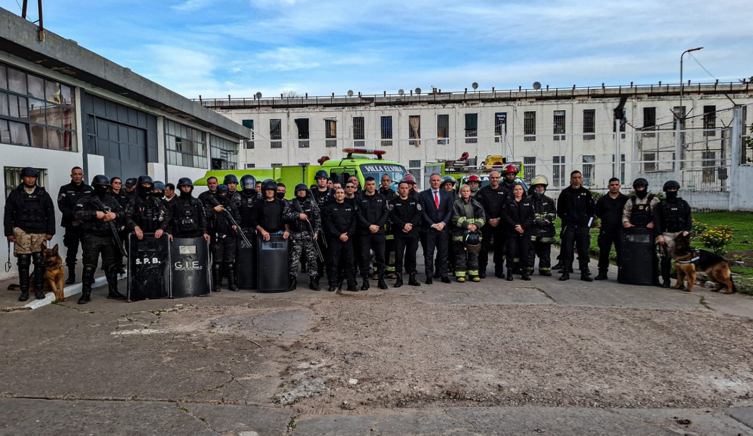 La práctica se desarrolló en el Pabellón 16 B de la Unidad 9 del Servicio Penitenciario Bonaerense (SPB) y contó con la colaboración de personal del Cuartel de Bomberos de Villa Elvira.