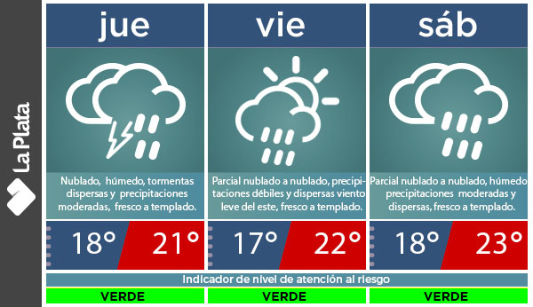 Asimismo debemos afirmar que esta jornada en La Plata habrá una temperatura mínima de 18° y una máxima de 21°.