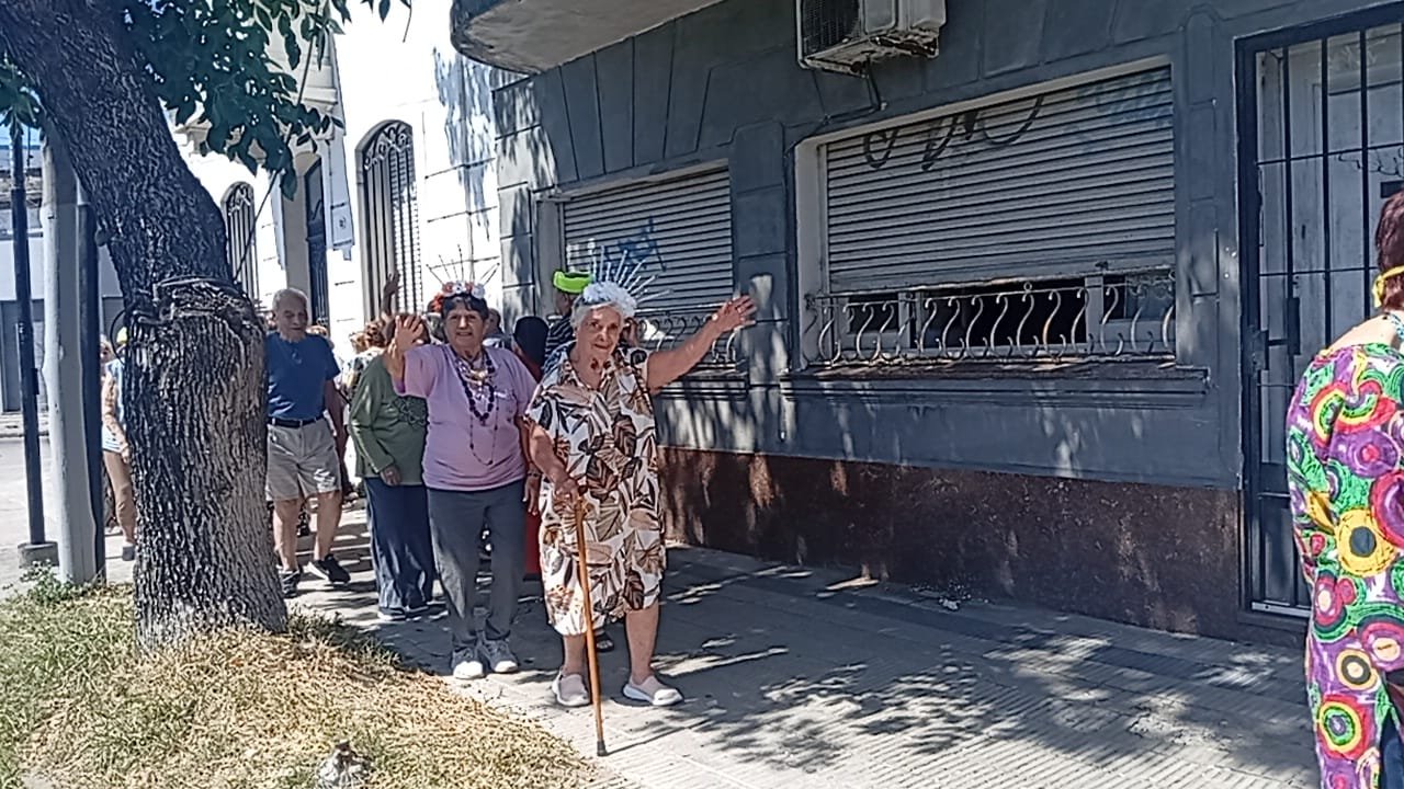 Un grupo de jubilados salió a festejar el carnaval en barrio Norte