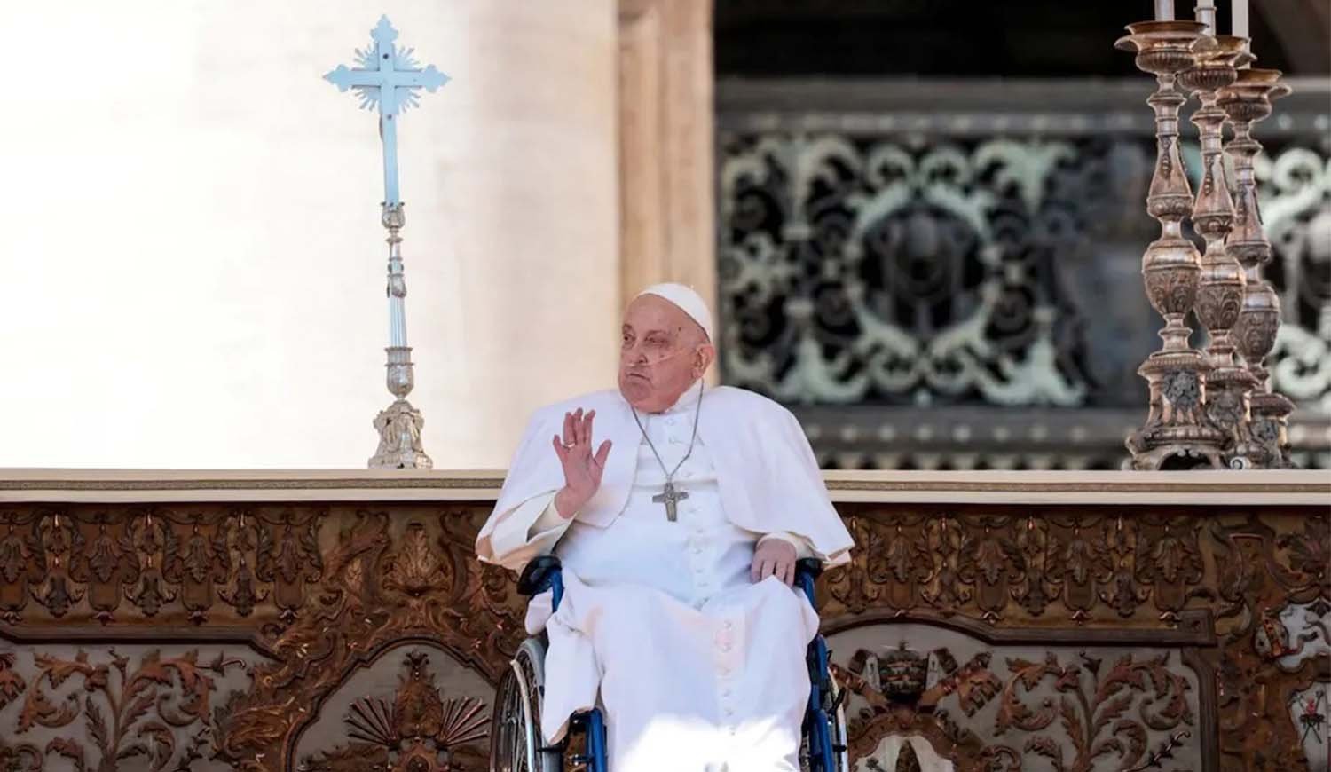 “Buen domingo a todos”, dijo Francisco, hablando por un micrófono, que golpeó ligeramente para asegurarse de que funcionara en un segundo intento. “Muchas gracias”, sumó. La voz del Papa sonó más fuerte que cuando se dirigió a los fieles a la salida del Hospital Gemelli el día de su alta, el 23 de marzo, tras luchar contra una neumonía potencialmente mortal durante una estancia hospitalaria que duró cinco semanas. Esta es apenas la segunda semana de al menos dos meses de reposo prescrito por el médico, en donde continúa con fisioterapia, terapia respiratoria y logopedia, así como con el tratamiento de una infección pulmonar persistente.