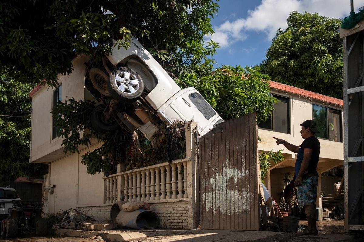 En Poza Rica, una ciudad petrolera ubicada a 275 kilómetros al noreste de Ciudad de México, donde Sheinbaum habló con los residentes en calles llenas de lodo, algunos vecindarios recibieron más de cuatro metros de agua cuando el río Cazones se desbordó.