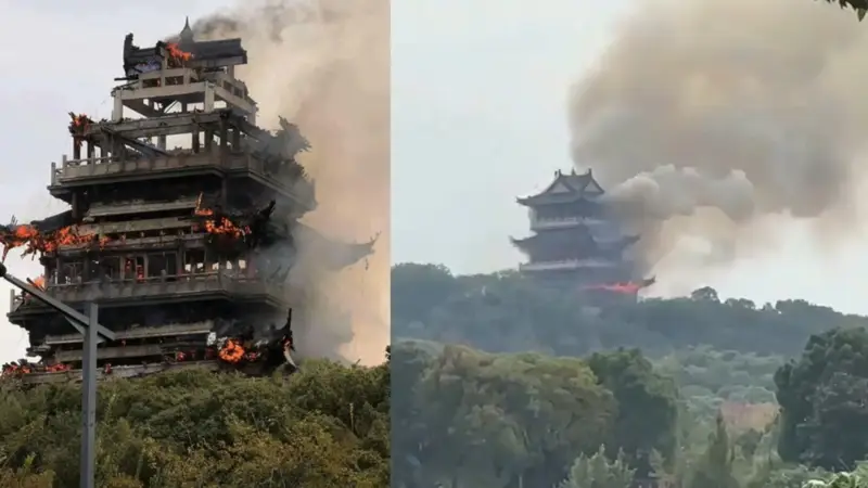 Un Incendio destruyó el histórico Pabellón Wenchang en China