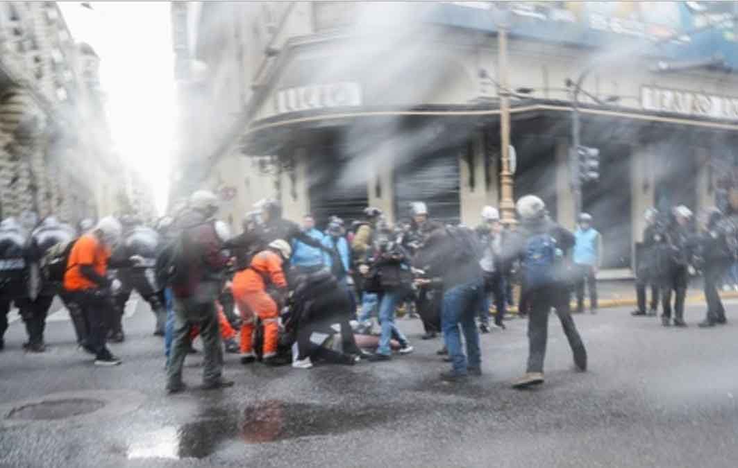 El operativo se llevó a cabo en cumplimiento del protocolo antipiquetes y alcanzó también a periodistas que cubrían la protesta. Desde temprano, miles de personas se habían movilizado para reclamar contra el ajuste y los vetos del Gobierno, pero la respuesta oficial volvió a ser la represión.