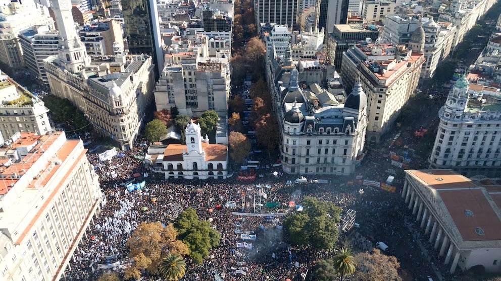 Desde su domicilio y con prohibición de salir al balcón, la expresidenta envió un mensaje a la multitud que colmó la Plaza de Mayo. Apuntó contra el modelo económico de Milei y llamó a organizarse para defender la democracia.