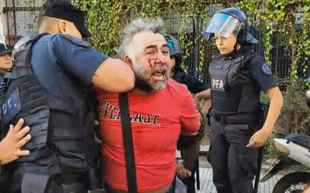 En medio del tumulto, el camarógrafo del canal televisivo A24, Facundo Tedeschini, quien se encontraba cubriendo la protesta, fue golpeado por los efectivos policiales, arrojado al piso y detenido ferozmente. La secuencia quedó registrada.