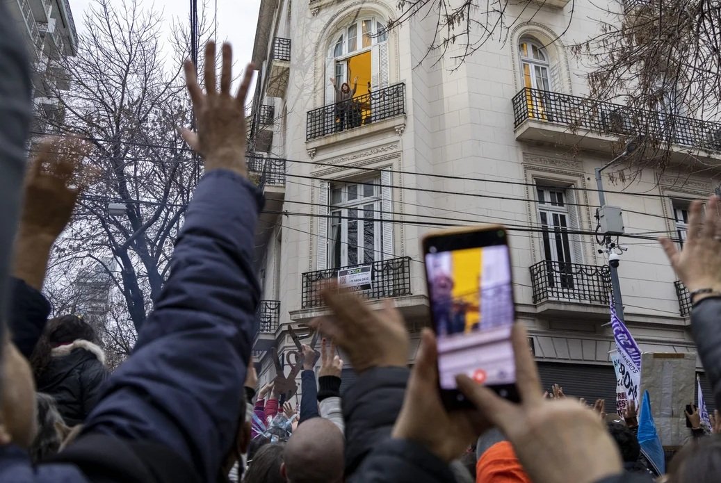 “Cristina está secuestrada por el poder, pero está acompañada por el pueblo”, sostuvo por su parte la intendenta de Quilmes, Mayra Mendoza, en declaraciones televisivas al arribar al departamento donde la exmandataria cumple prisión domiciliaria.