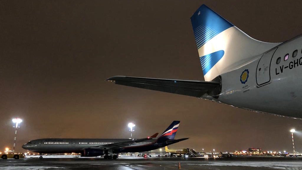 El vuelo a Moscú, había partido, bajo la denominación de AR1060, a las 21.14, desde el aeropuerto de Ezeiza y luego de sobrevolar Uruguay, Brasil, cruzar el Atlántico y volar sobre España, Francia, Suiza, Alemania, República Checa, Polonia y Bielorrusia, ingresó finalmente al espacio aéreo ruso hasta su aterrizaje en el aeropuerto Sheremétievo, a las 18,23 (hora local).