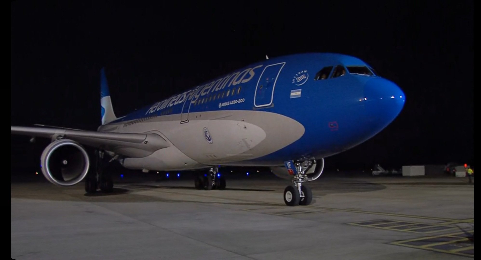 La aeronave Airbus 330-200, matrícula LV-GIF, aterrizó a las 18.50 en el aeropuerto internacional de Ezeiza transportando 768.000 dosis de la vacuna fabricada en China, tras haber despegado desde Beijing ayer a la tarde y hacer una escala técnica en Madrid para reabastecimiento de combustible.