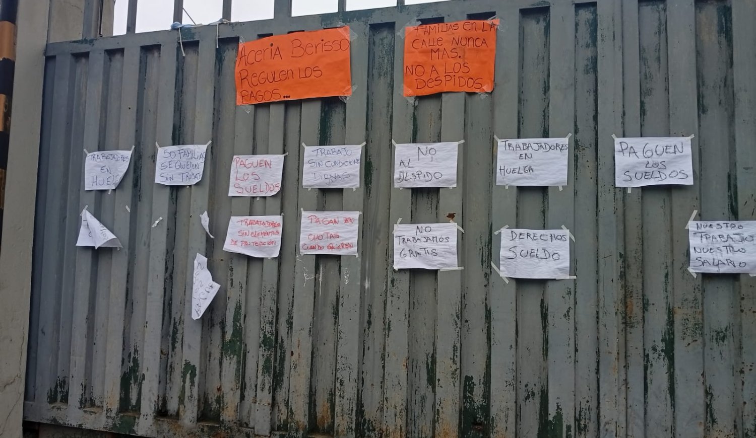 Los trabajadores permanecen dentro del predio en asamblea permanente, intentando sostener la producción mientras los dueños no se presentan ni mantienen contacto con proveedores. En el portón de ingreso, los carteles colgados expresan el malestar de los obreros que, ante la incertidumbre, reclaman soluciones urgentes para conservar sus puestos de trabajo.