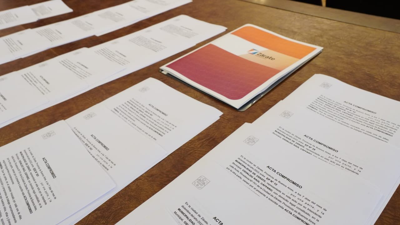 Establecimientos del distrito firmaron un acta compromiso en el Palacio Municipal para continuar trabajando de manera conjunta con el Departamento Ejecutivo por el bienestar de niñas, niños y adolescentes escolarizados.