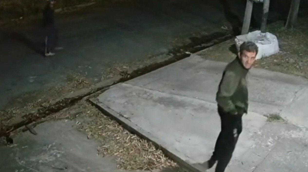 De pronto suben a la vereda y se meten en una casa, donde sigilosamente se cuelan por el frente donde las víctimas tenían estacionados dos automóviles. Uno de los ladrones se inmiscuye entre los dos vehículos y procurando no ser descubierto, agarró uno de los objetos que sustrajeron y se lo pasó a su socio delictivo, que enseguida huyó corriendo.