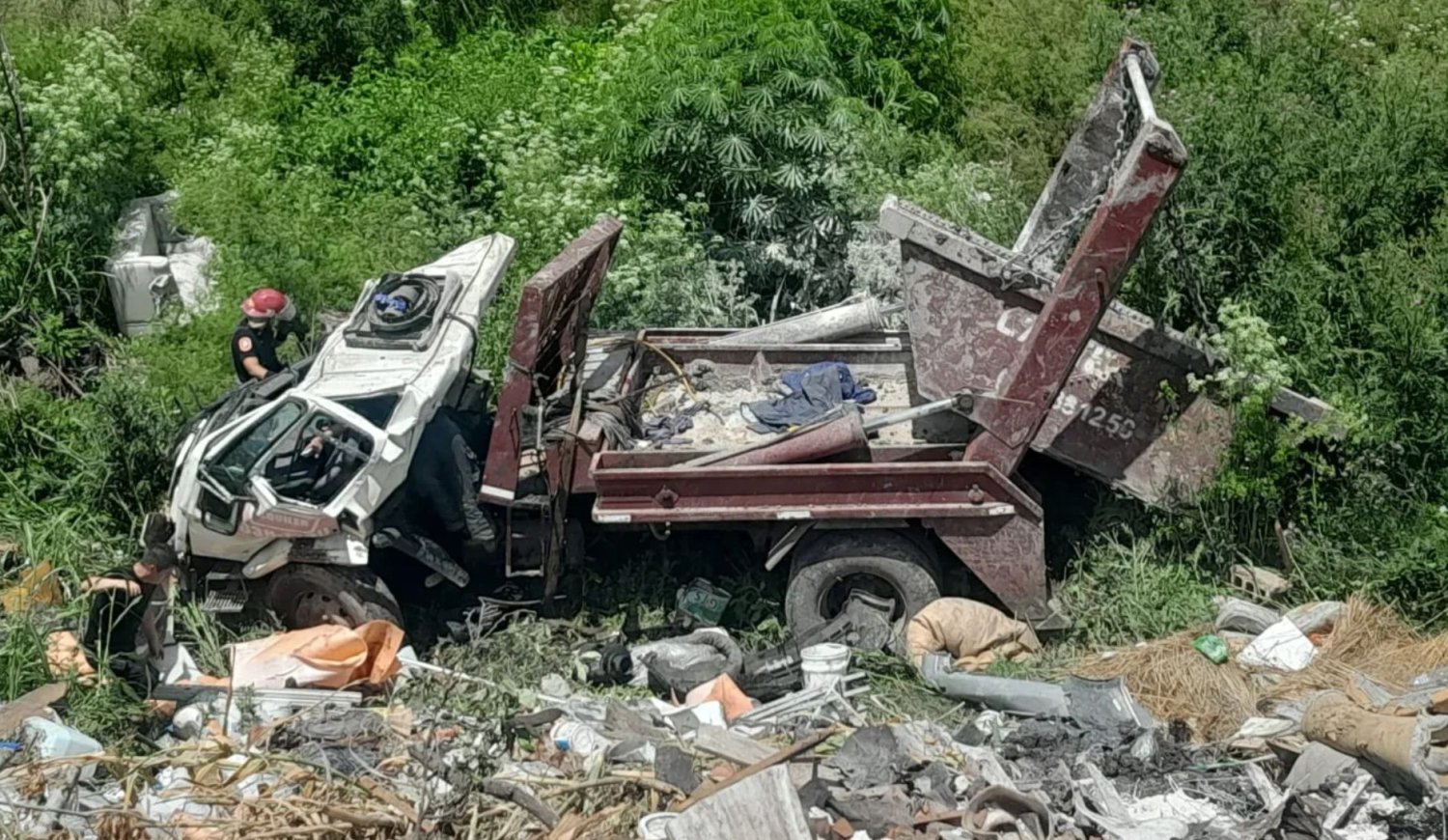 El hecho ocurrió en las calles 176 bis y 529, cuando el Ford Cargo realizaba una maniobra de descarga y, por motivos que aún se investigan, perdió estabilidad y terminó desbarrancando dentro de la cava. Según relataron testigos, el vehículo dio varios tumbos antes de detenerse, generando un momento de gran conmoción entre quienes se encontraban en el predio.