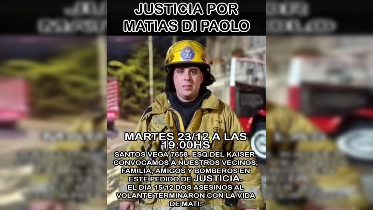 Hoy se llevará a cabo una marcha en la localidad bonaerense de Tres de Febrero para pedir justicia por la muerte de Matías Di Paolo, el bombero que hace una semana fue atropellado junto con sus compañeros mientras apagaban un incendio.