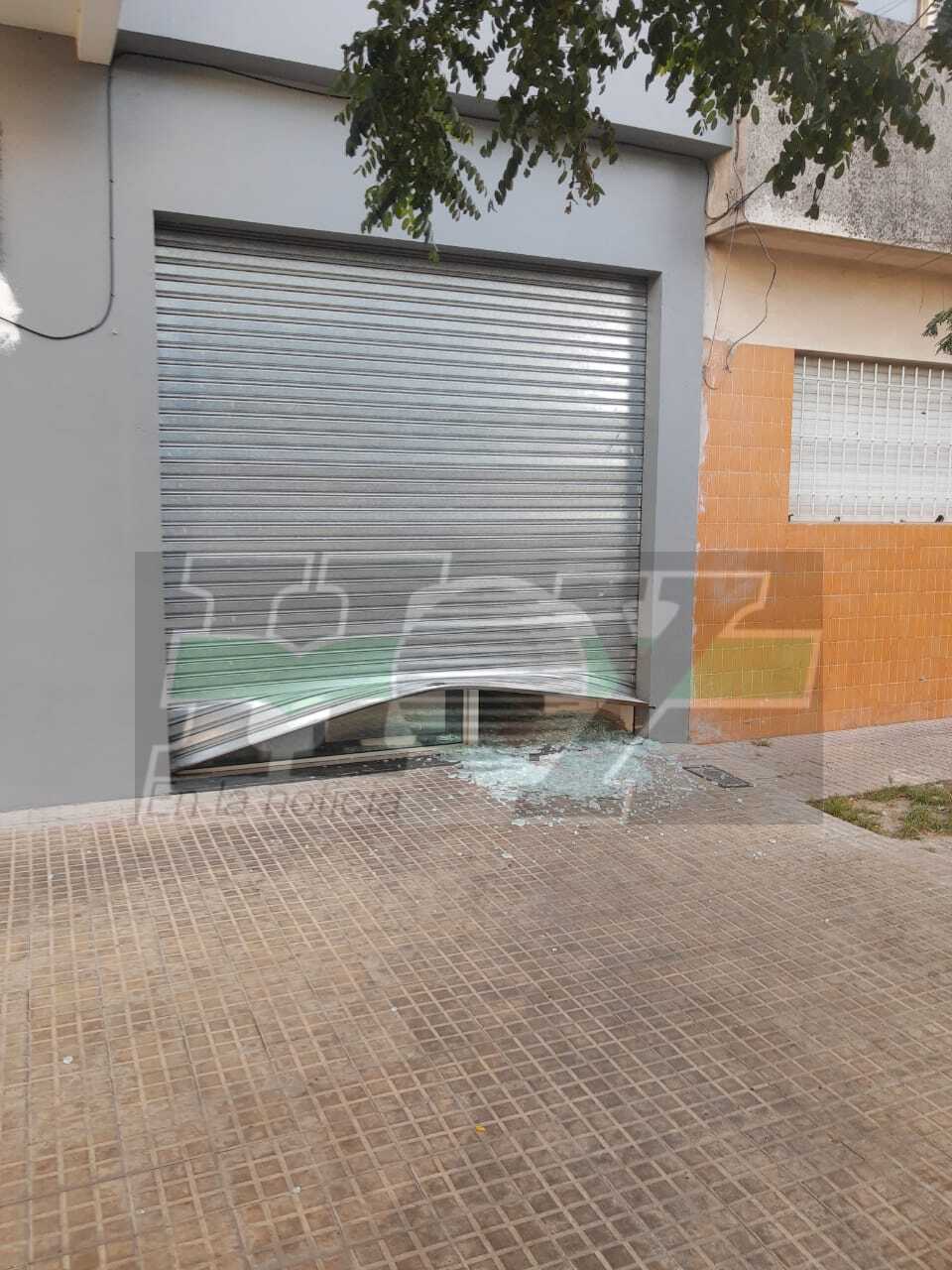 Tras doblar la cortina metálica que protege la entrada del lugar, destrozaron a golpes con un objeto contundente la puerta de ingreso, la cual es de vidrio, por lo que dejaron pedazos de cristal tirados por todo el frente del comercio.
